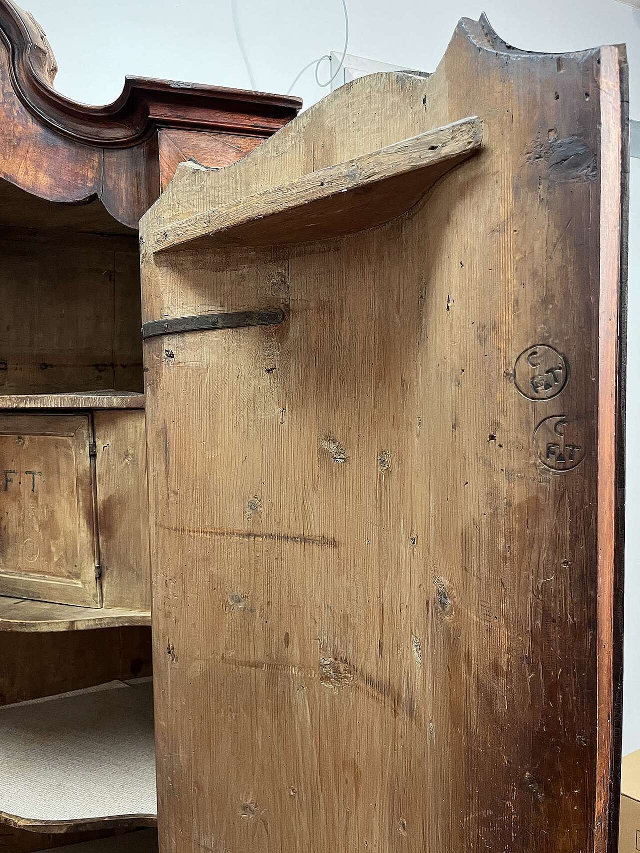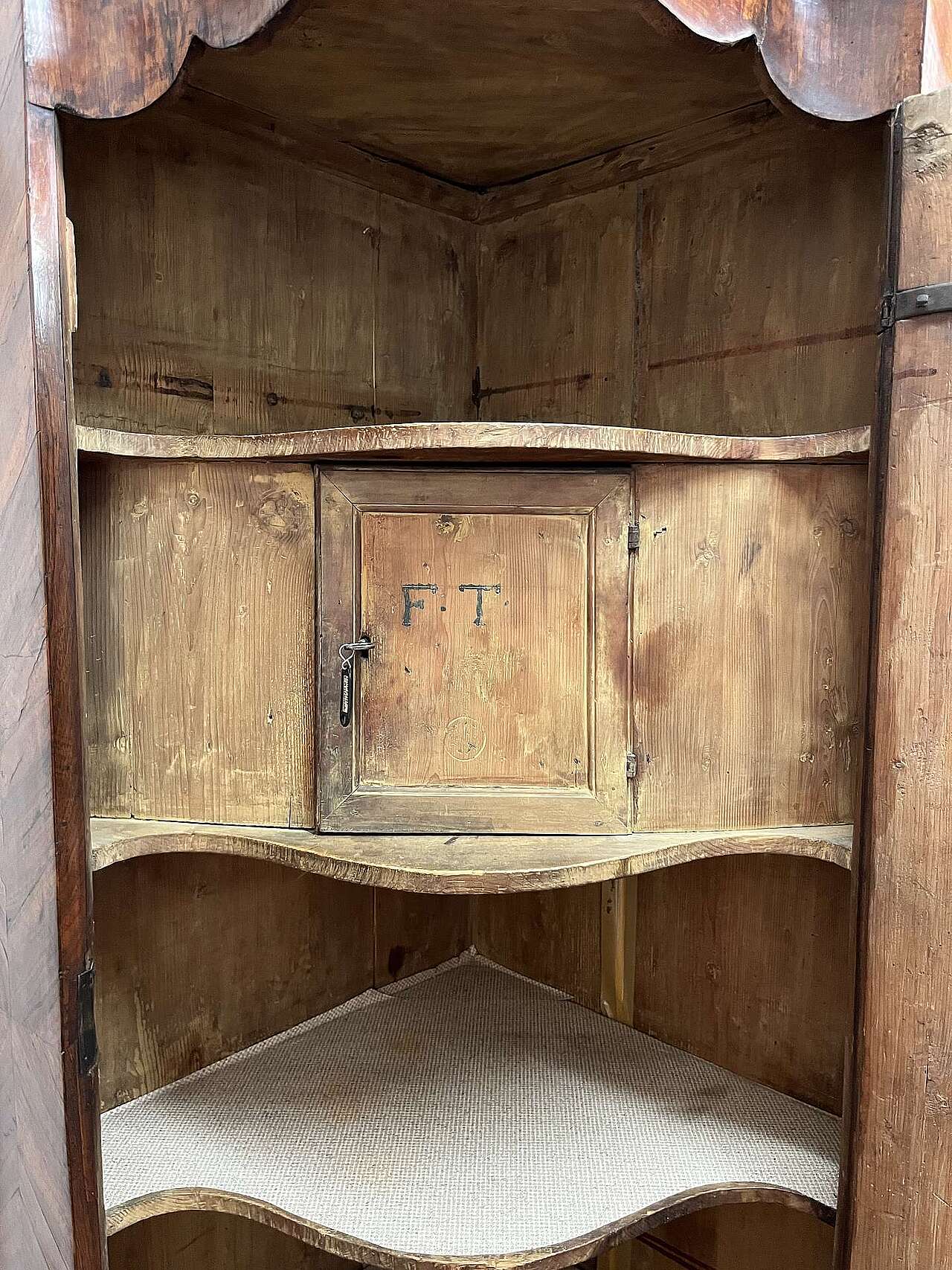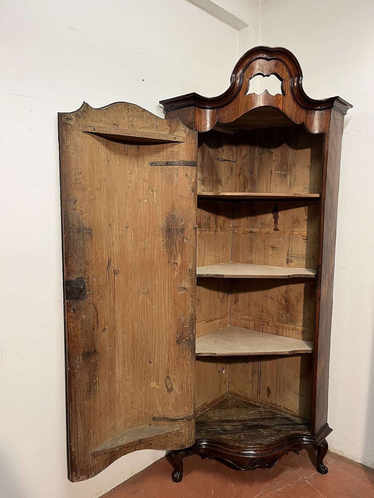 Rara coppia di Cantonali Veneziani Luigi XV, interamente in noce e radica di noce, mossi sul fronte.