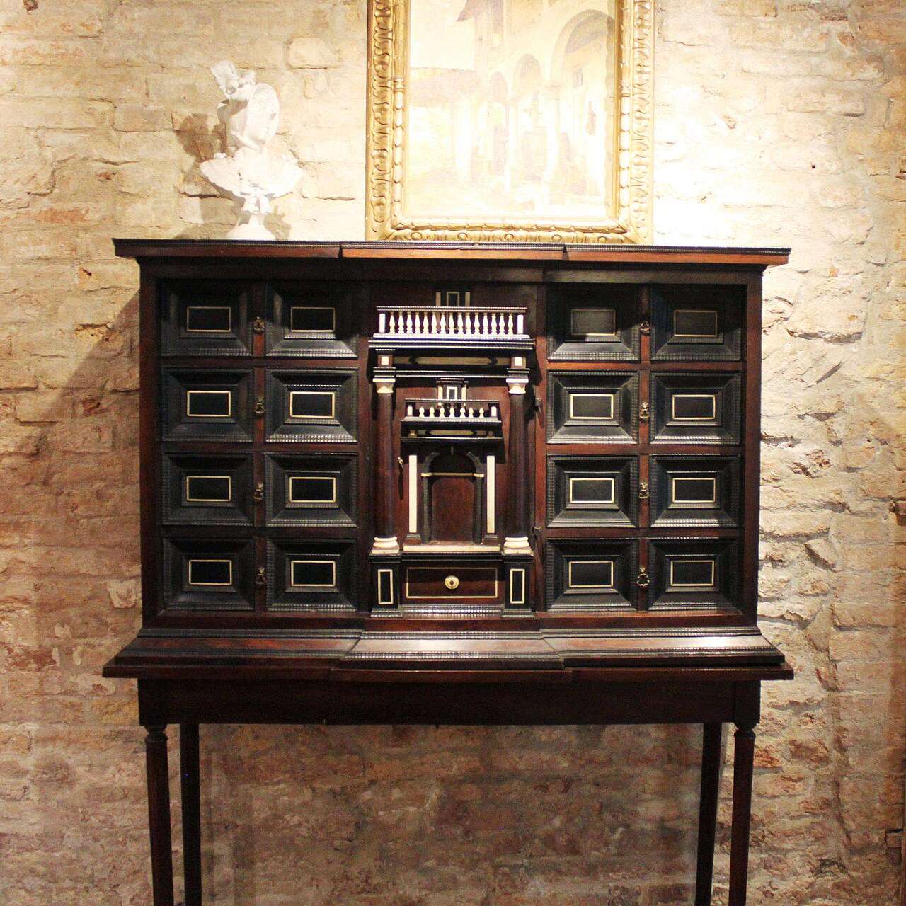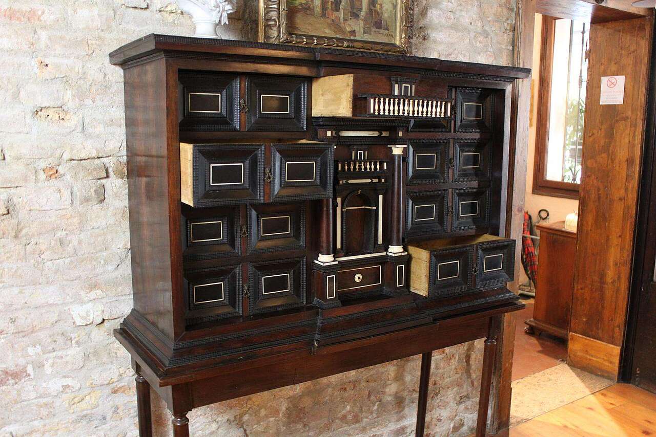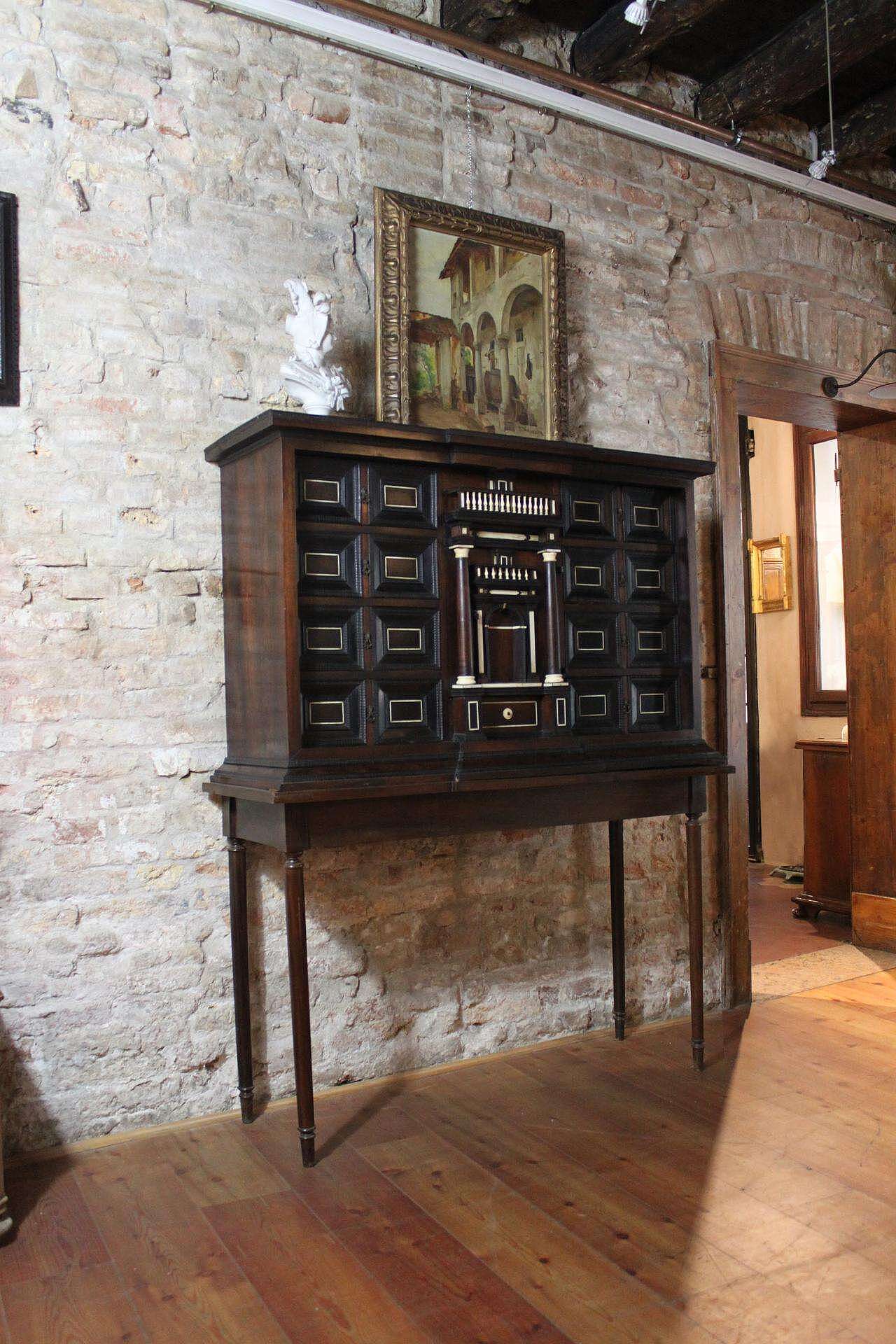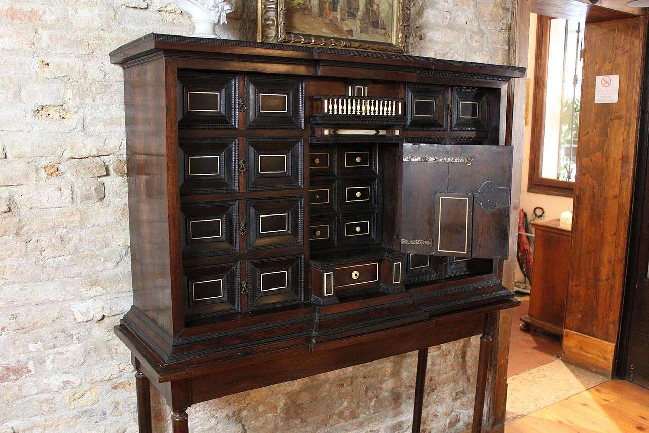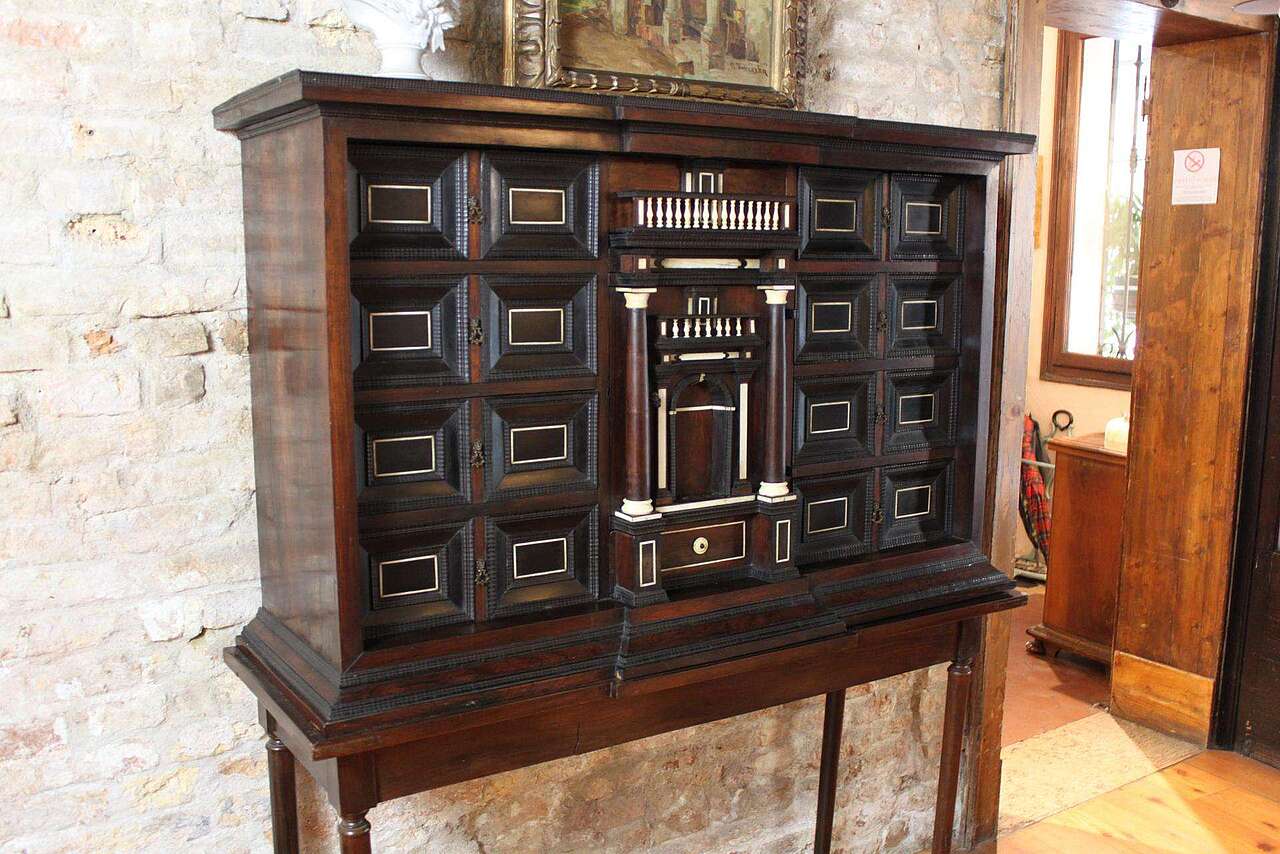 Questo mobile antico del '500 ha importanti dimensioni ed è in noce.