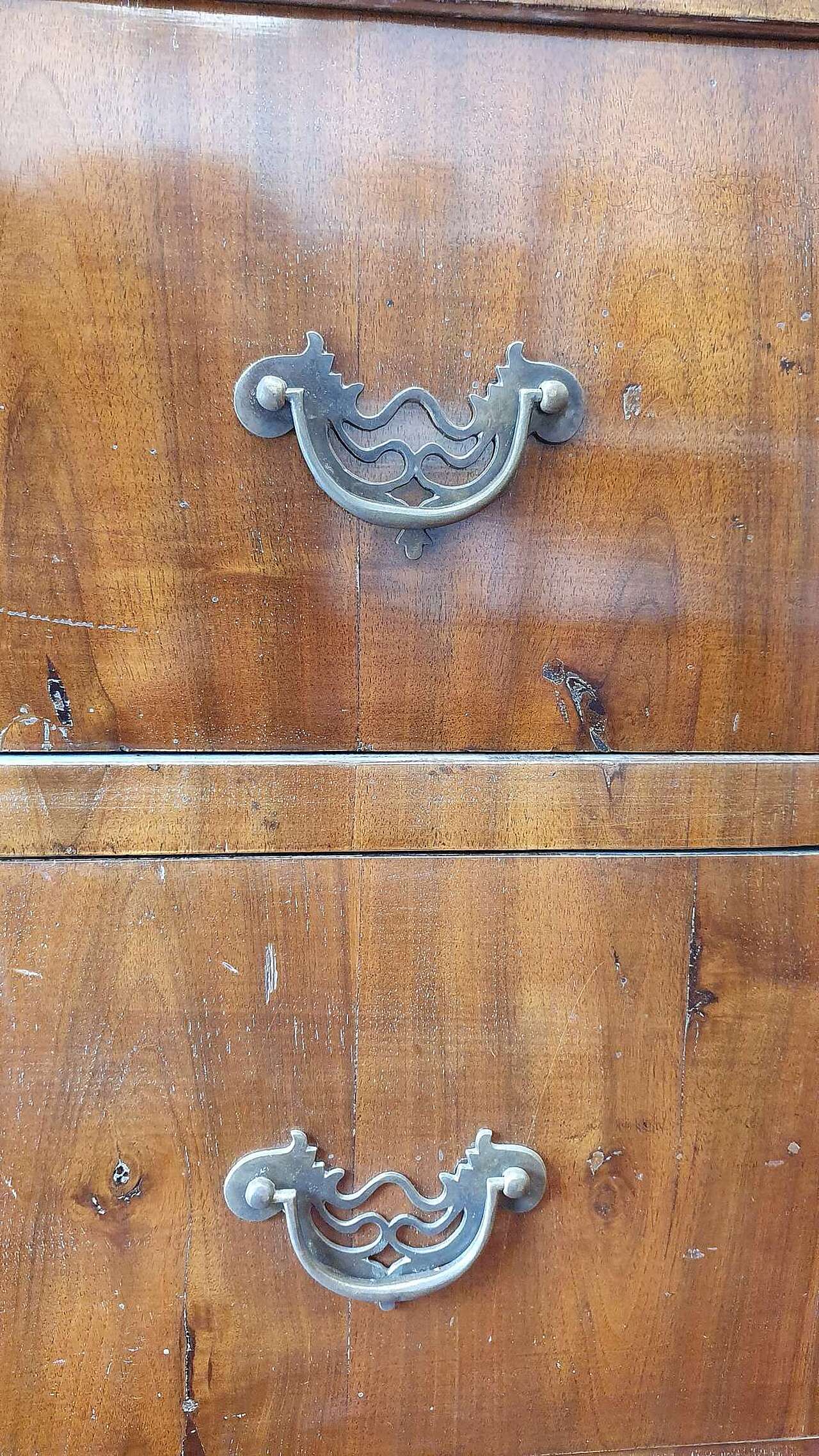 Cassettone completamente lastronato in legno di noce, gambe molto alte perfette in tutta la loro struttura.