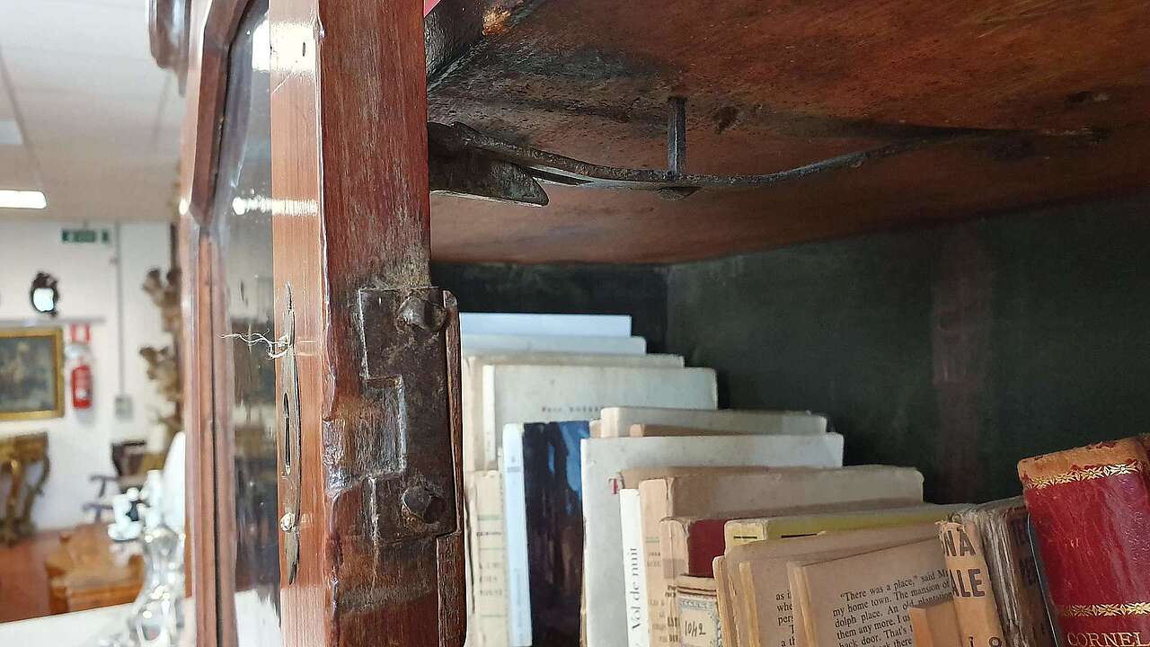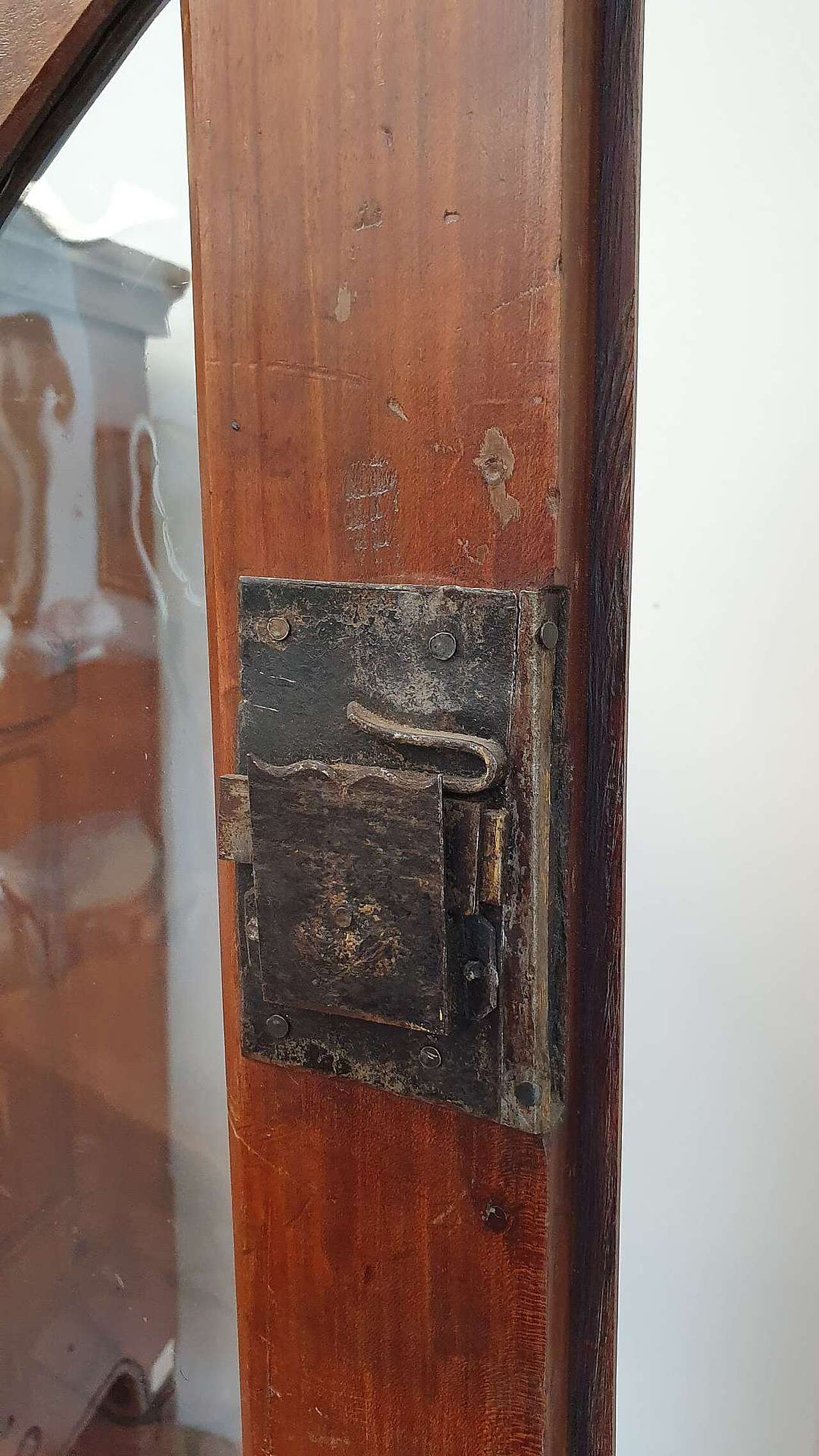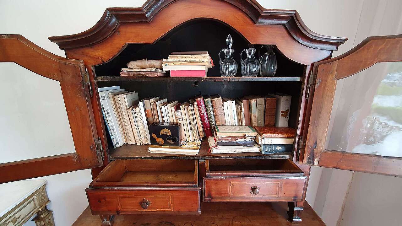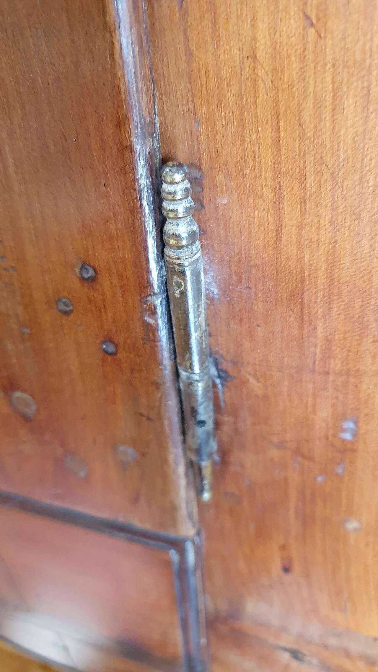 Comò con alzata trentino in ciliegio, filettato su fronte e fianchi e con segreto.