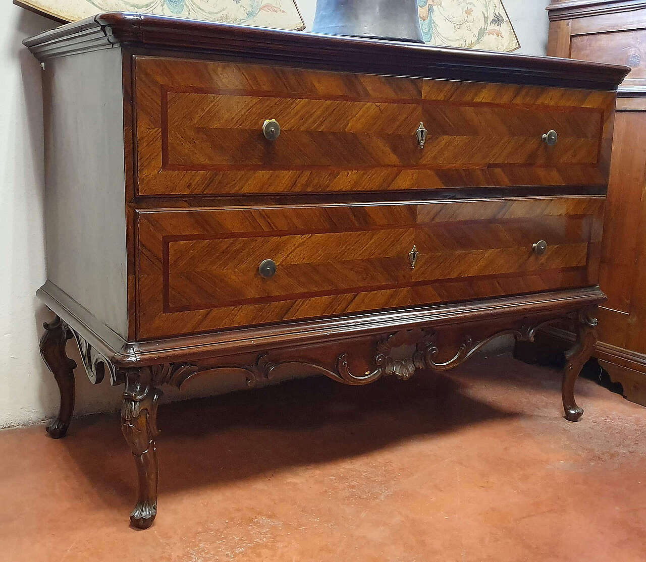 Como due cassetti Veneto metà 700 interamente lastronato in noce