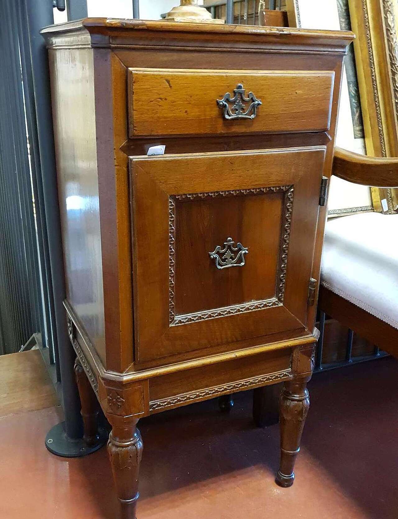 Coppia di comodini Luigi XVI. Finalmente intagliati nei particolari della porta, del basamento e dele gambe. Noce. Veneto.