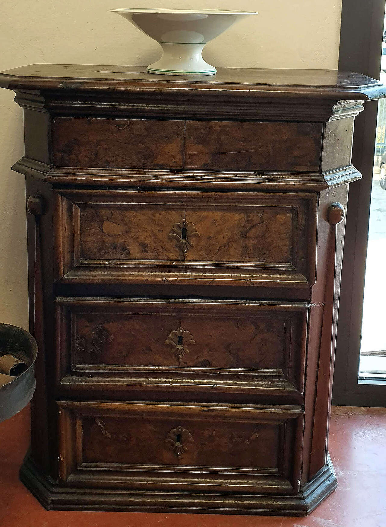 Stipetto in noce e radica di noce con cassetti, Veneto, '700