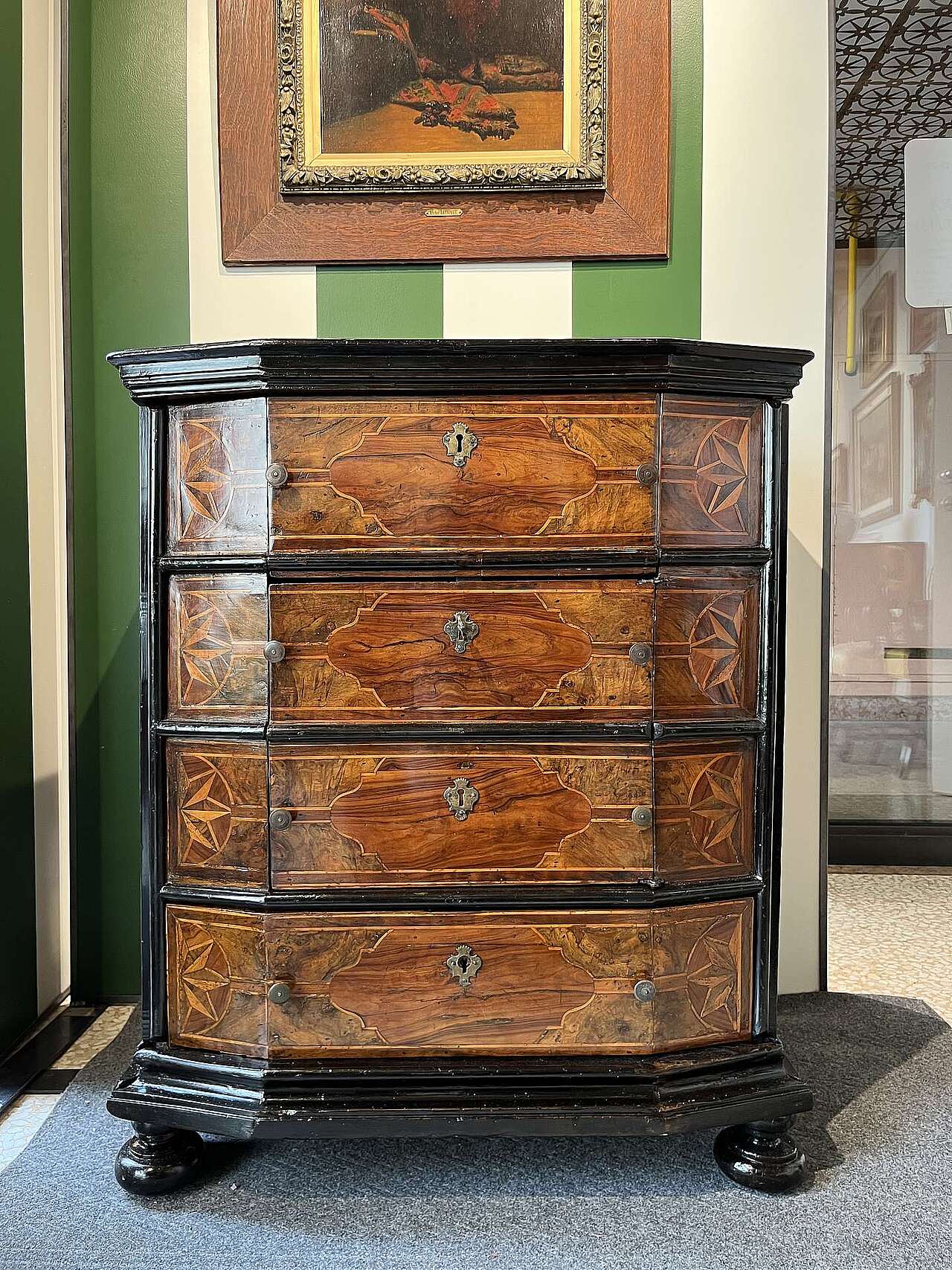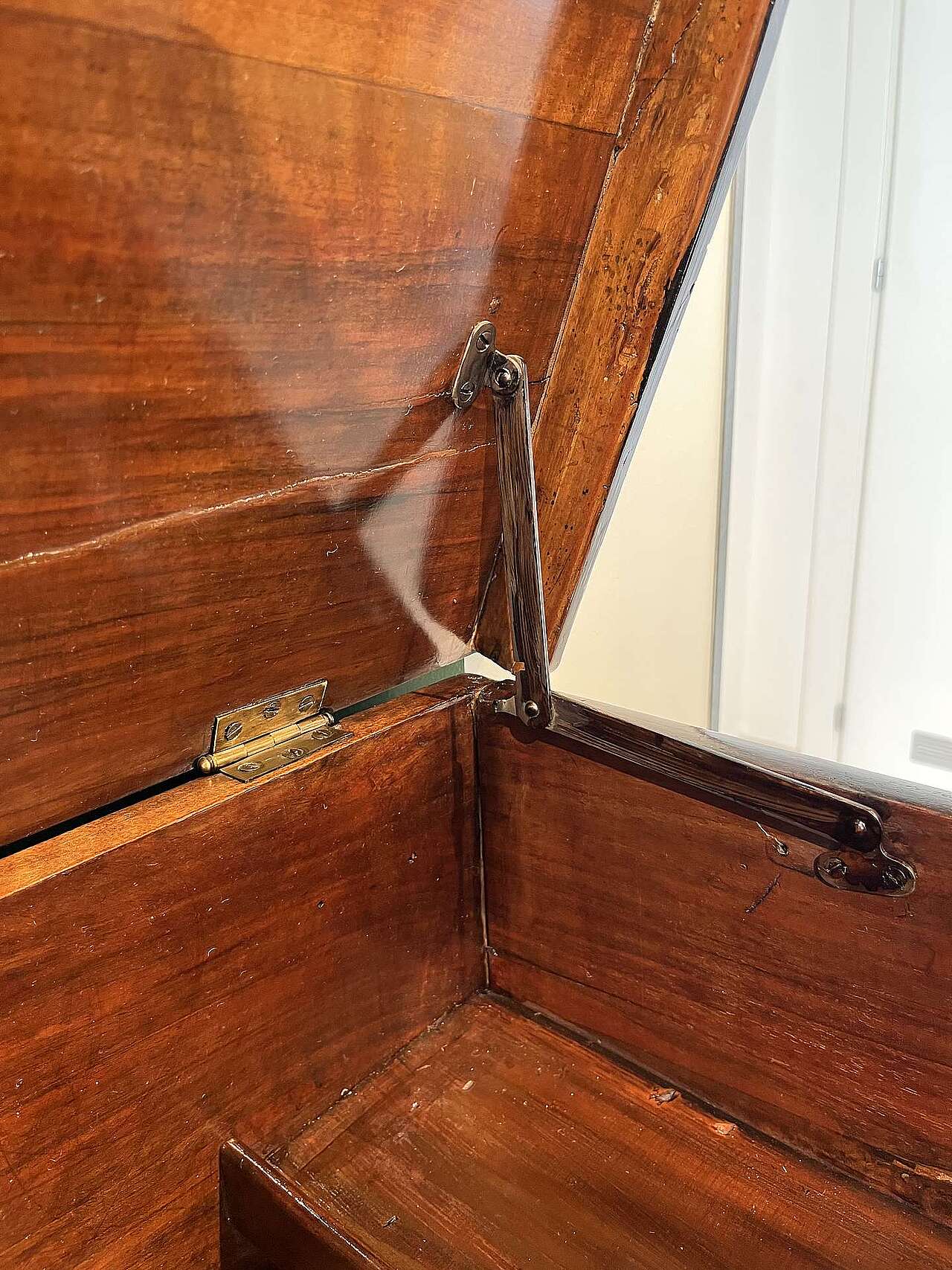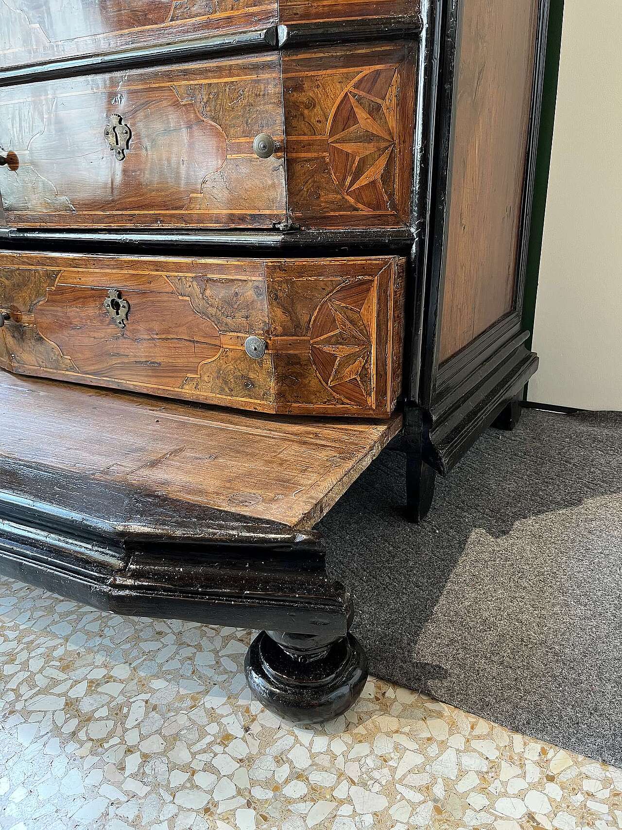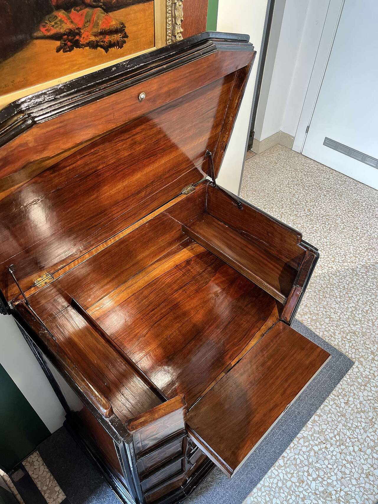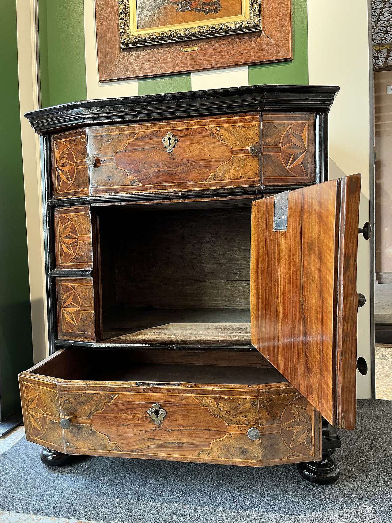 Mobiletto con cassetti e inginocchiatoio epoca fine 600 in noce. Lo stipo è stato probabilmente modificato nel 900 cambiandone l'uso e la struttura, conservando l'integrità della parte esterna.