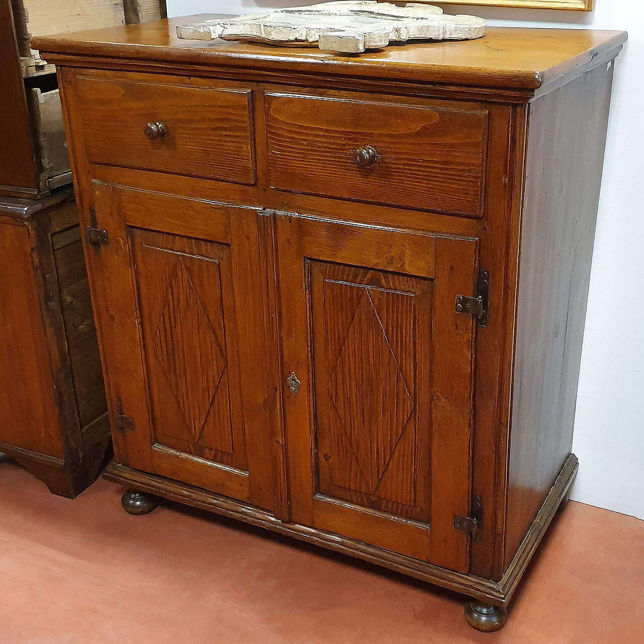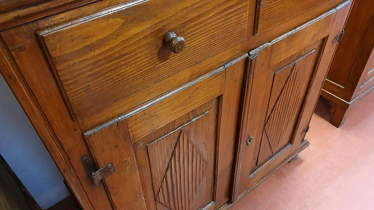 Credenza in abete friulana di fine '700, riconoscibile dalla lavorazione a rombo sulle porte.