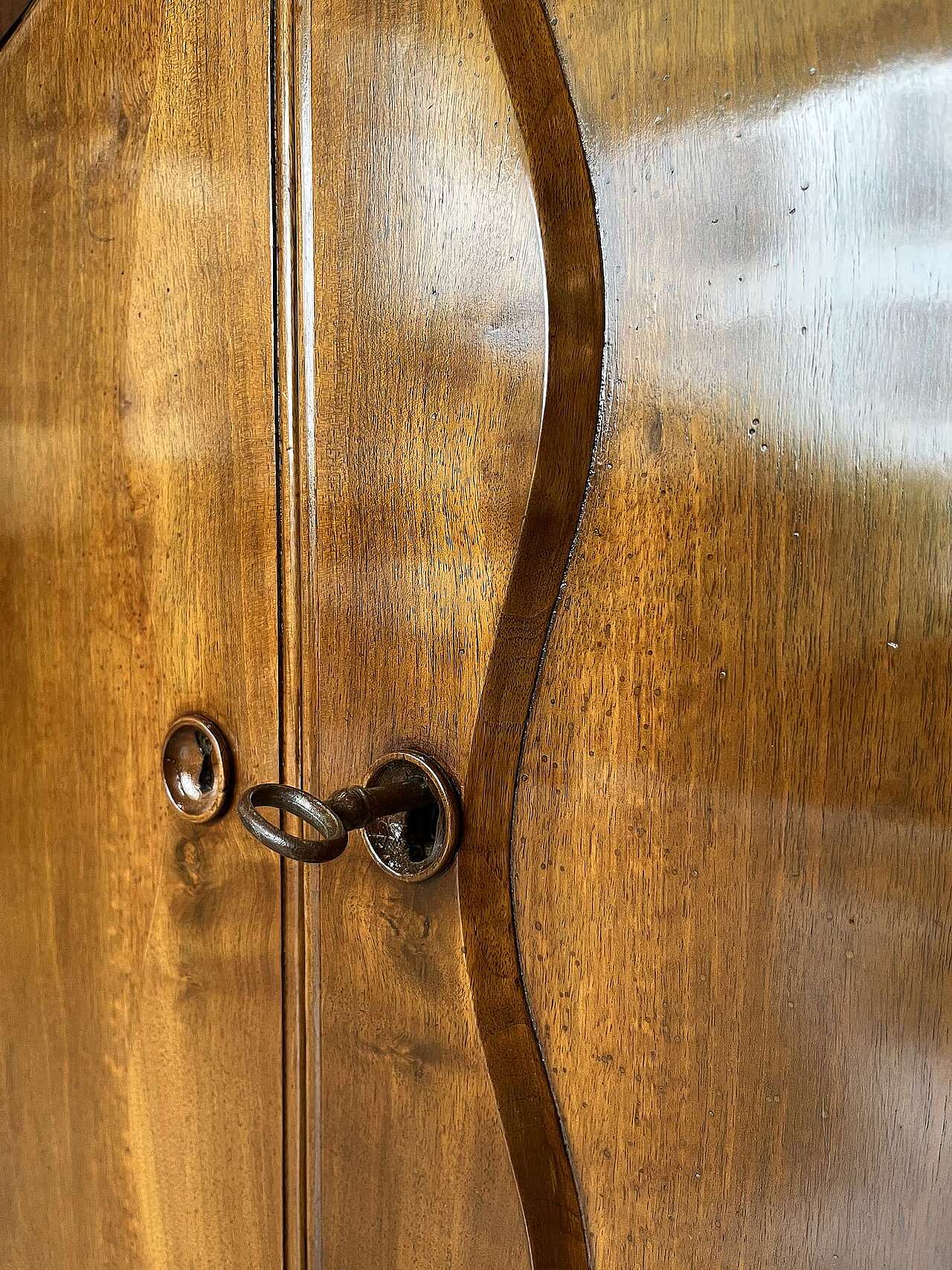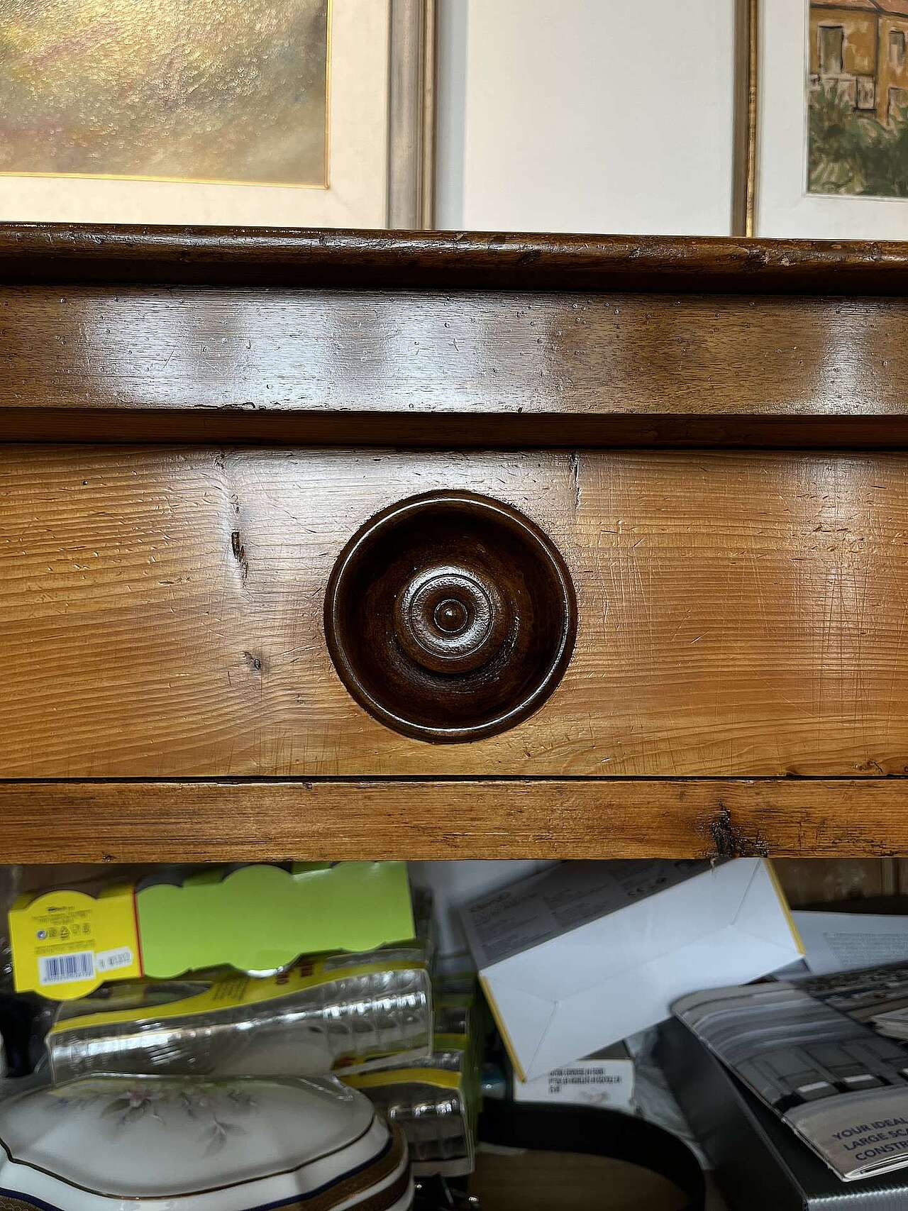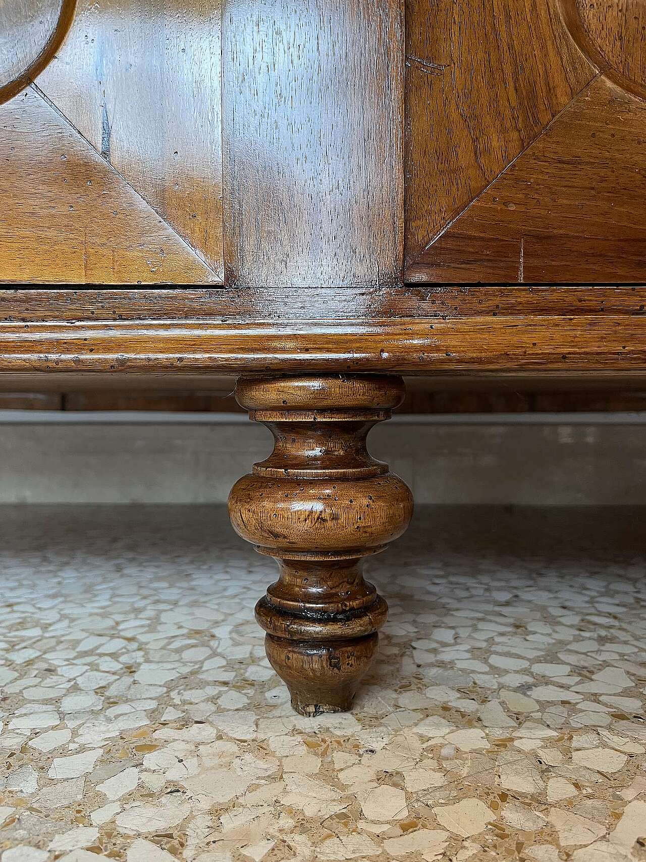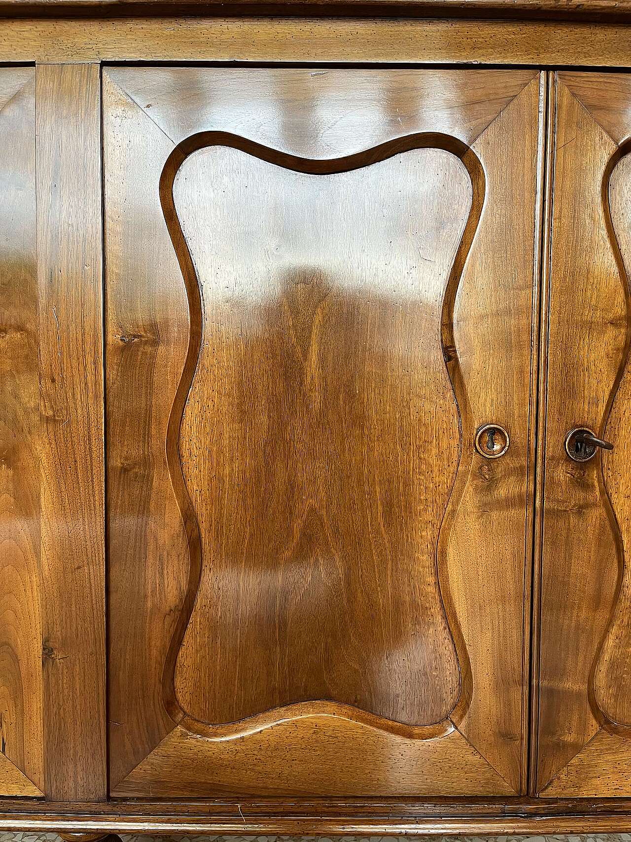 Credenza Veneta prima meta dell'800 in noce con 4 porte e 2 cassetti all'interno. Particolare del pannello delle ante sagomate tipico del periodo tra il 1830 e 40 in Veneto. Dimensioni: cm. 200 x 62 x h. 98