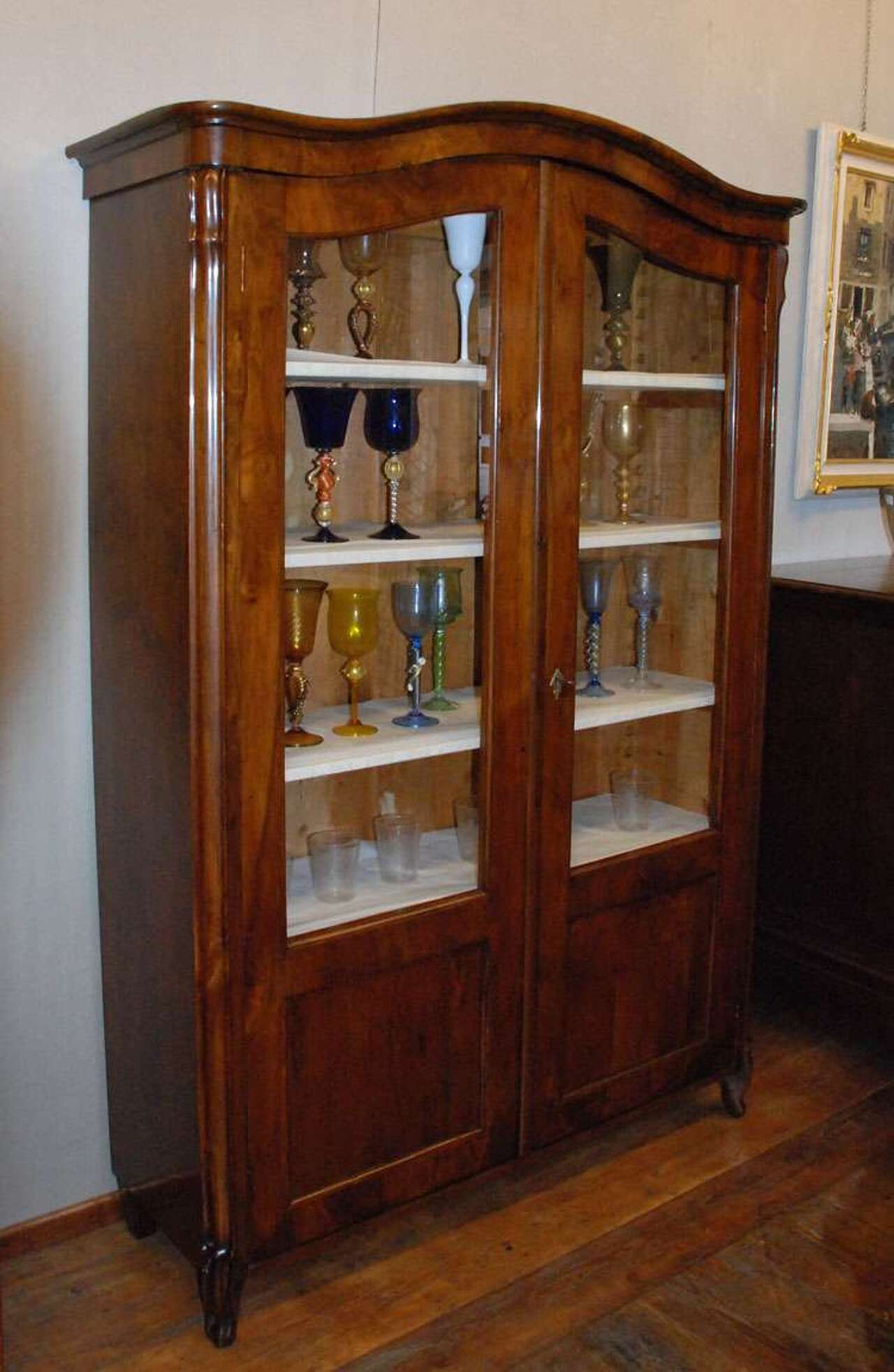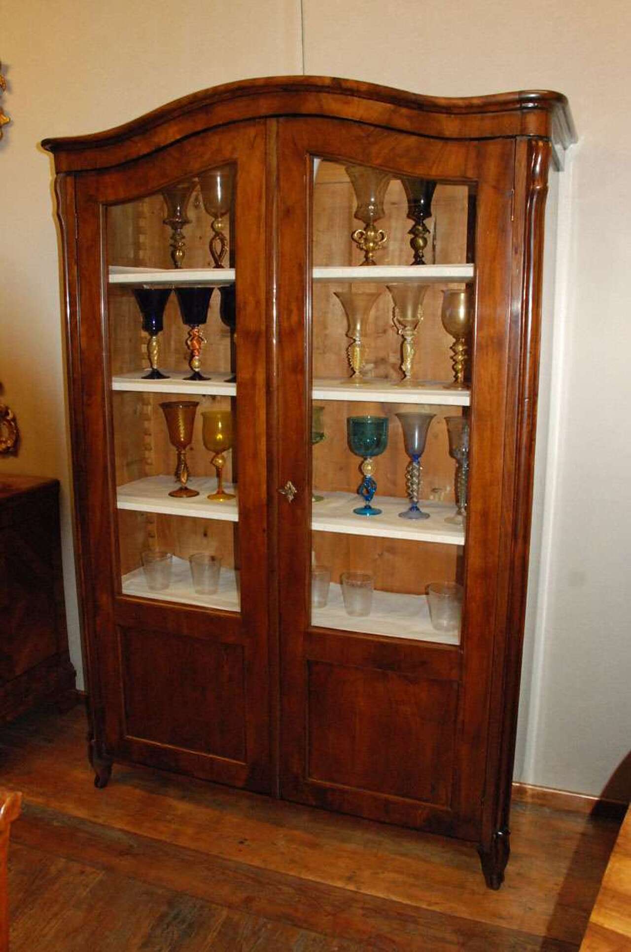 Vetrina-Libreria, in legno di noce con parti impiallacciate in legno di noce, due ante con la parte inferiore chiusa da un pannello.