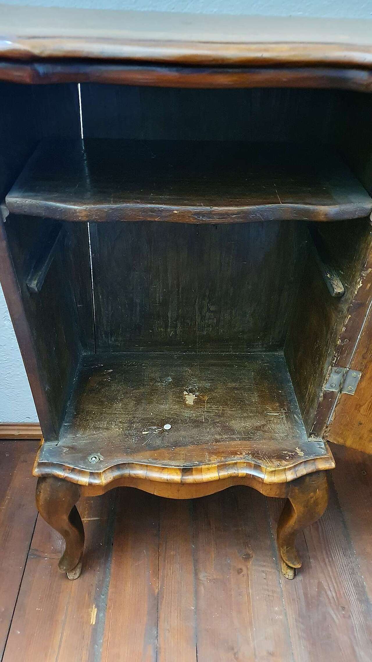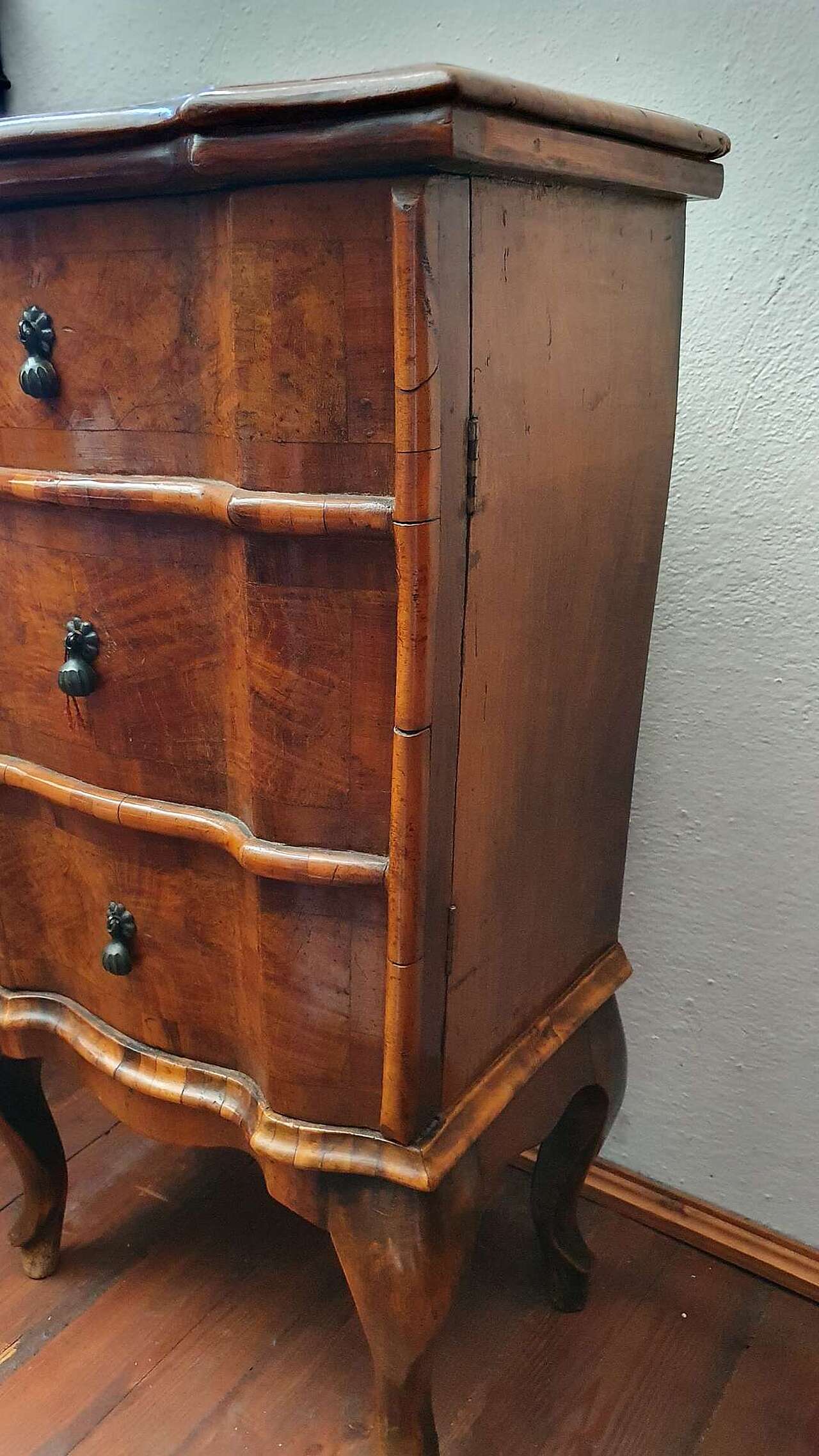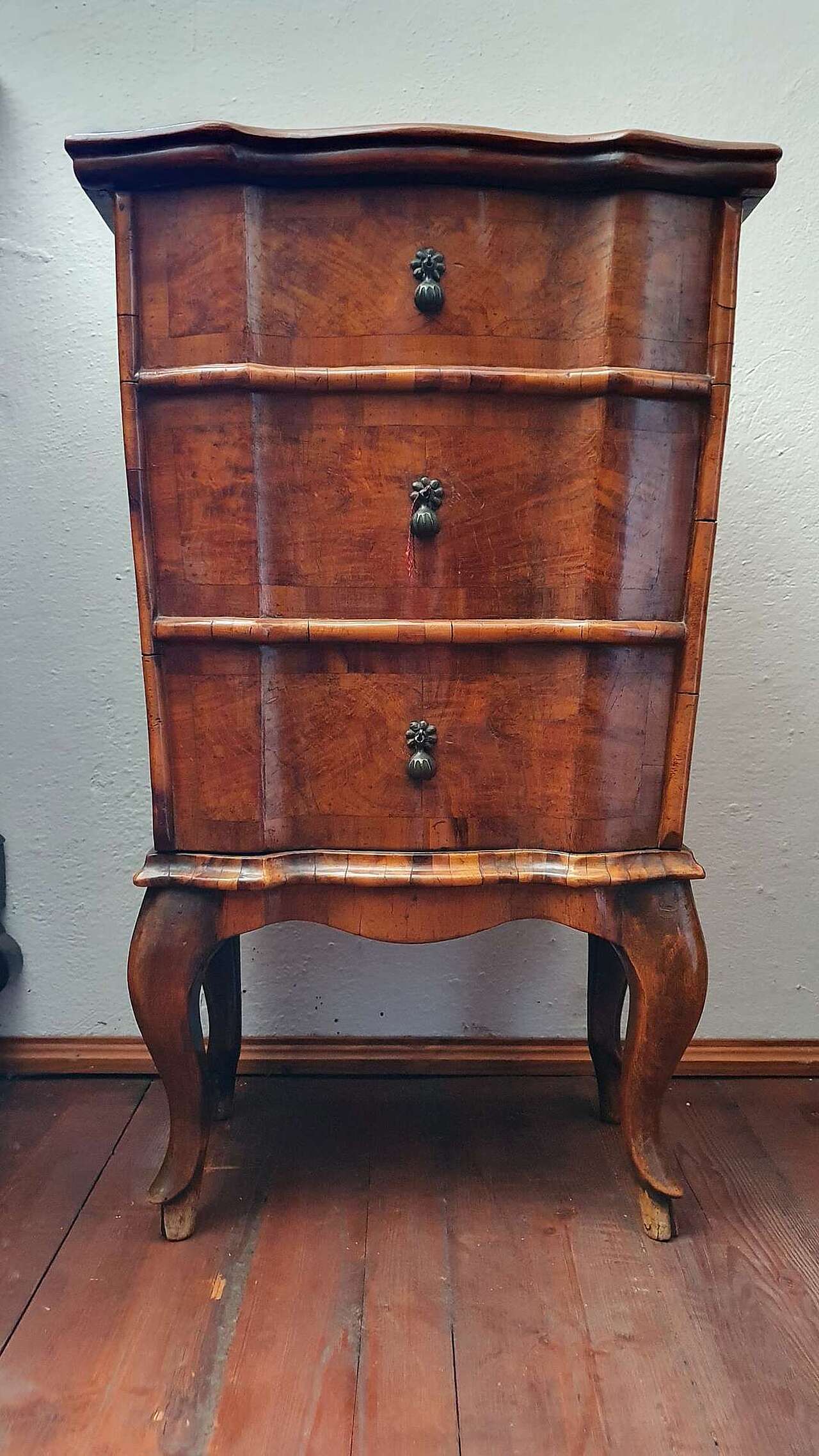 Bedside table with three drawers, made of walnut and briar wood, eighteenth century Venetian.