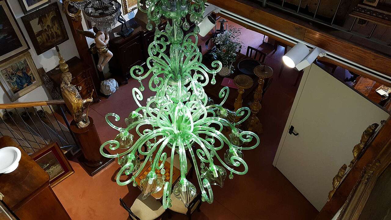 Venice, 1920. Murano glass. Authentic and restored. 3 levels "little gardens". Diameter 120 cm, height 165 cm. It was done by a Venetian lawyer who moved to Turin in the late '20s for the room of his studio.