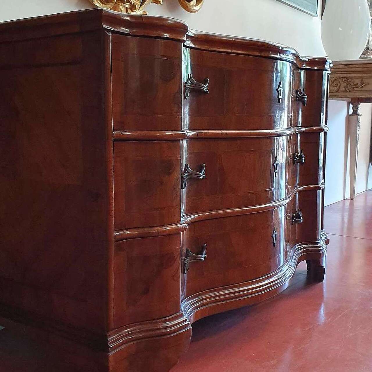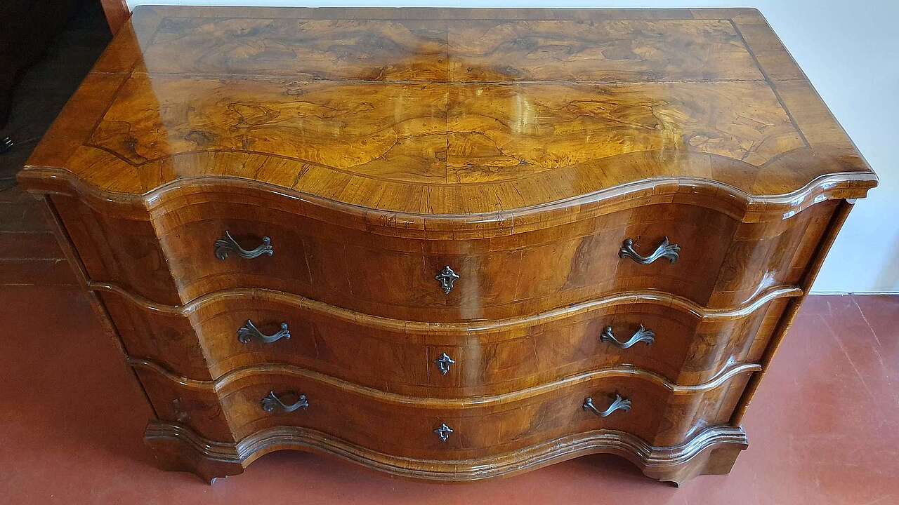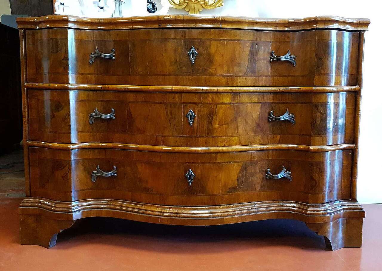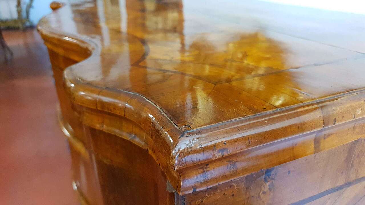 The sides are straight, the front instead has a beautiful and important crossbow shape. The feet are on a shelf.