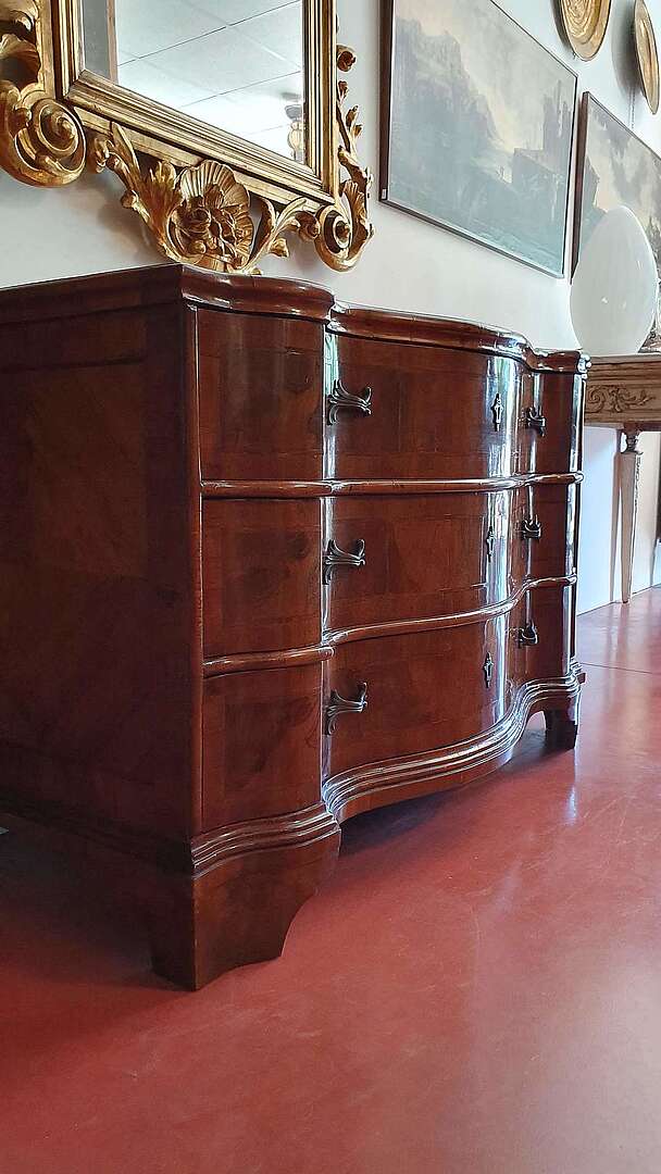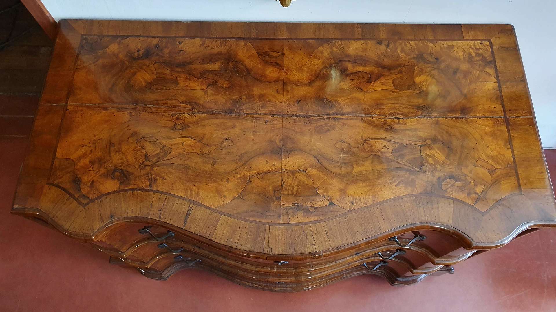 The sides are straight, the front instead has a beautiful and important crossbow shape. The feet are on a shelf.