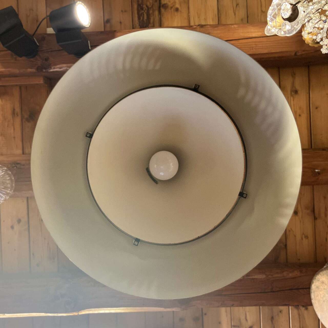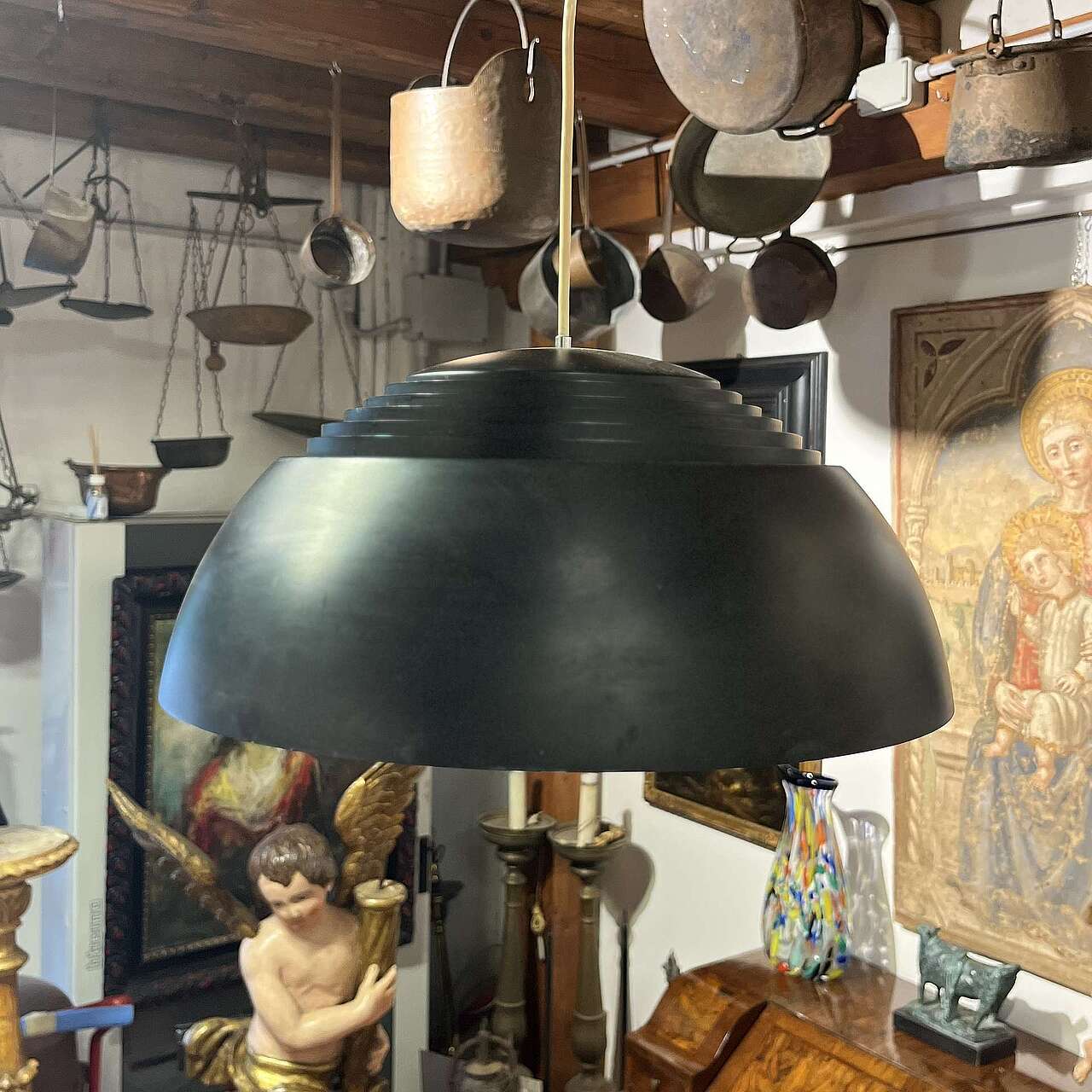 AJ Royal chandelier from the 60s by Arne Jacobsen produced by the Louis Poulsen company. Made of aluminum and porcelain measuring 23cm x 50cm to be wired.