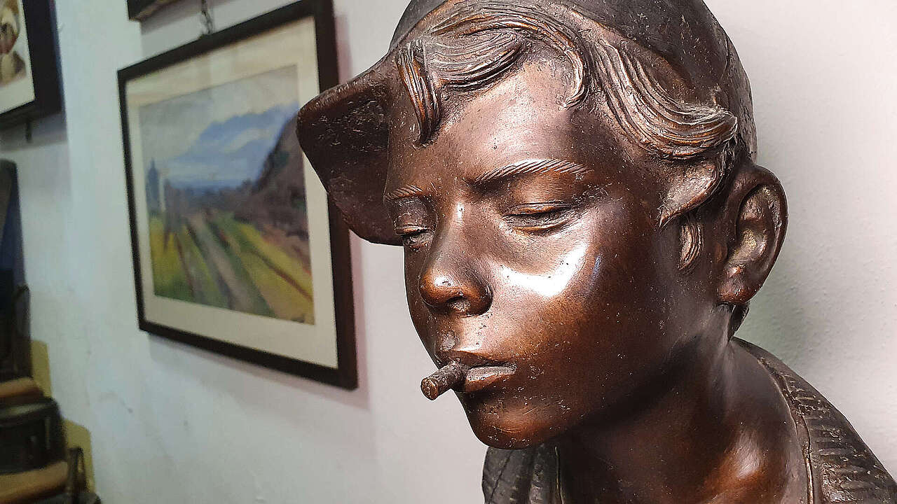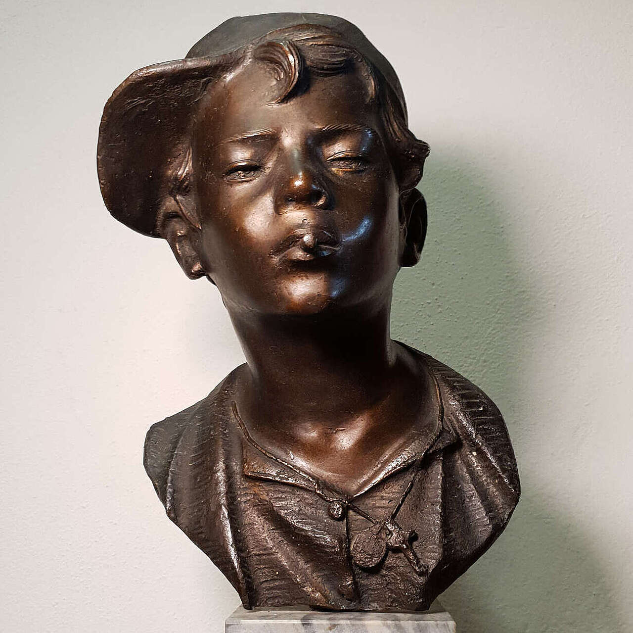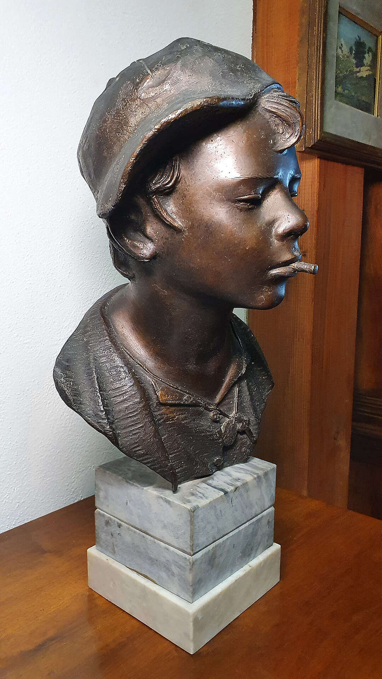 Scultura in bronzo "Lo Scugnizzo", firmata De Martino (Napoli 1870 - Napoli 1935) scultore italiano attivo a Parigi