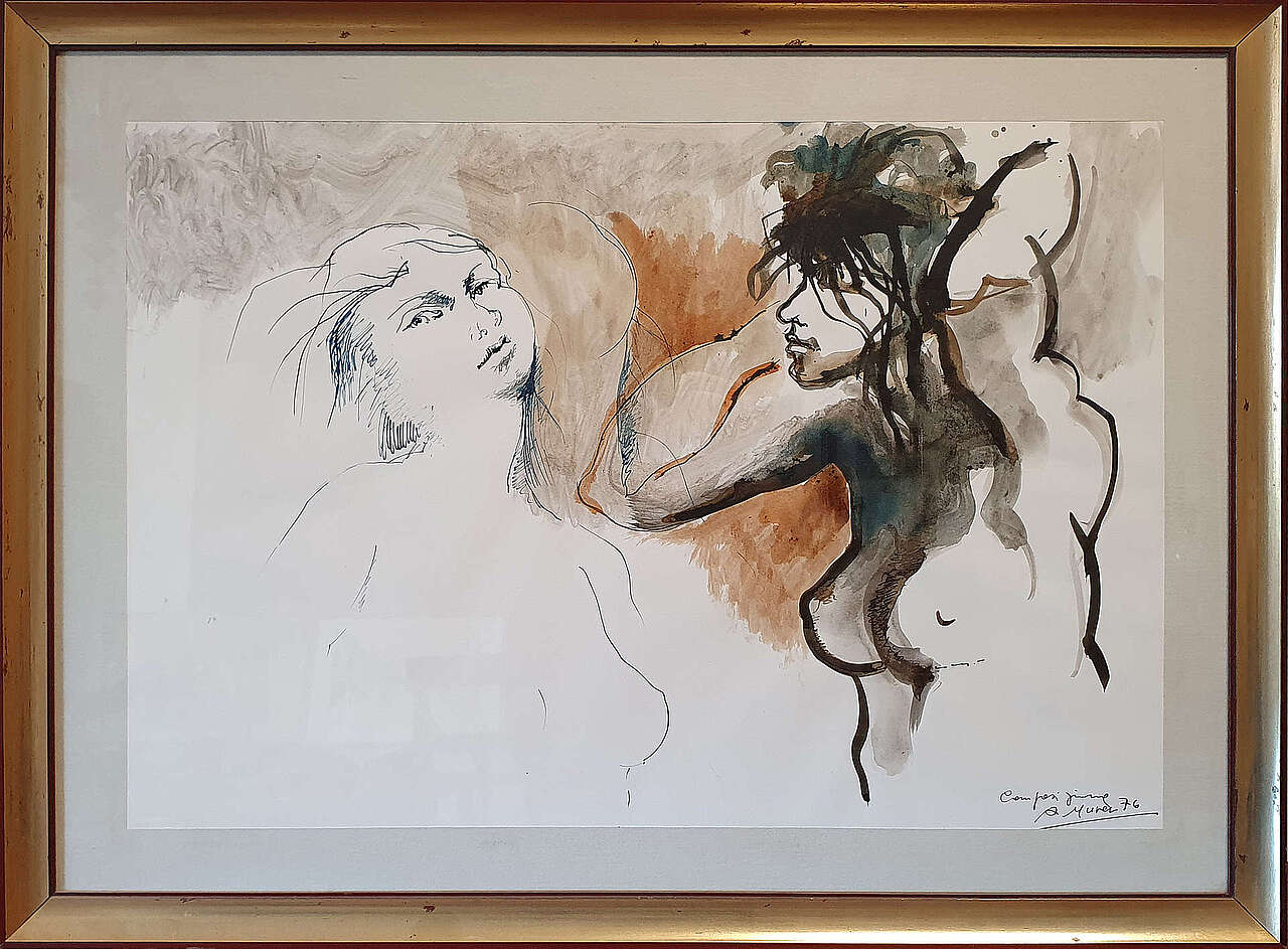 Augusto Murer (Falcade 1922 - Padova 1985) Scultore e pittore. Composizione del'76, tecnica mista, acquerello e china su carta.