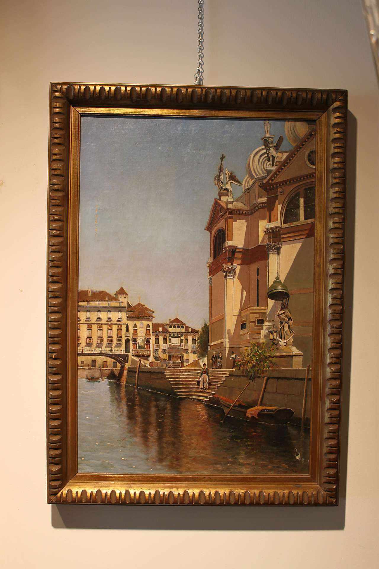 Olio su tela, raffigurante un bellissimo scorcio di Venezia, "la Salute", di ottima qualità, firmato Alberto Prosdocimi, nato il 9 settembre 1852 a Venezia. Pittore di paesaggi, miniature, architetture, ammirato per la lucidità delle prospettive e per l'evidenza degli effetti luminosi.