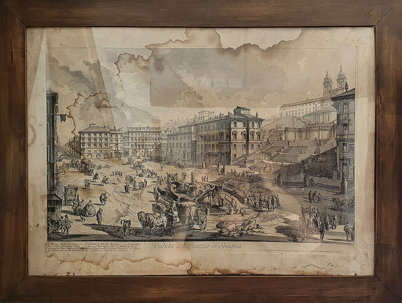 Incisione di Giovanni Battista Piranesi (Mogliano Veneto 1720 - Roma 1778) "Piazza di Spagna"