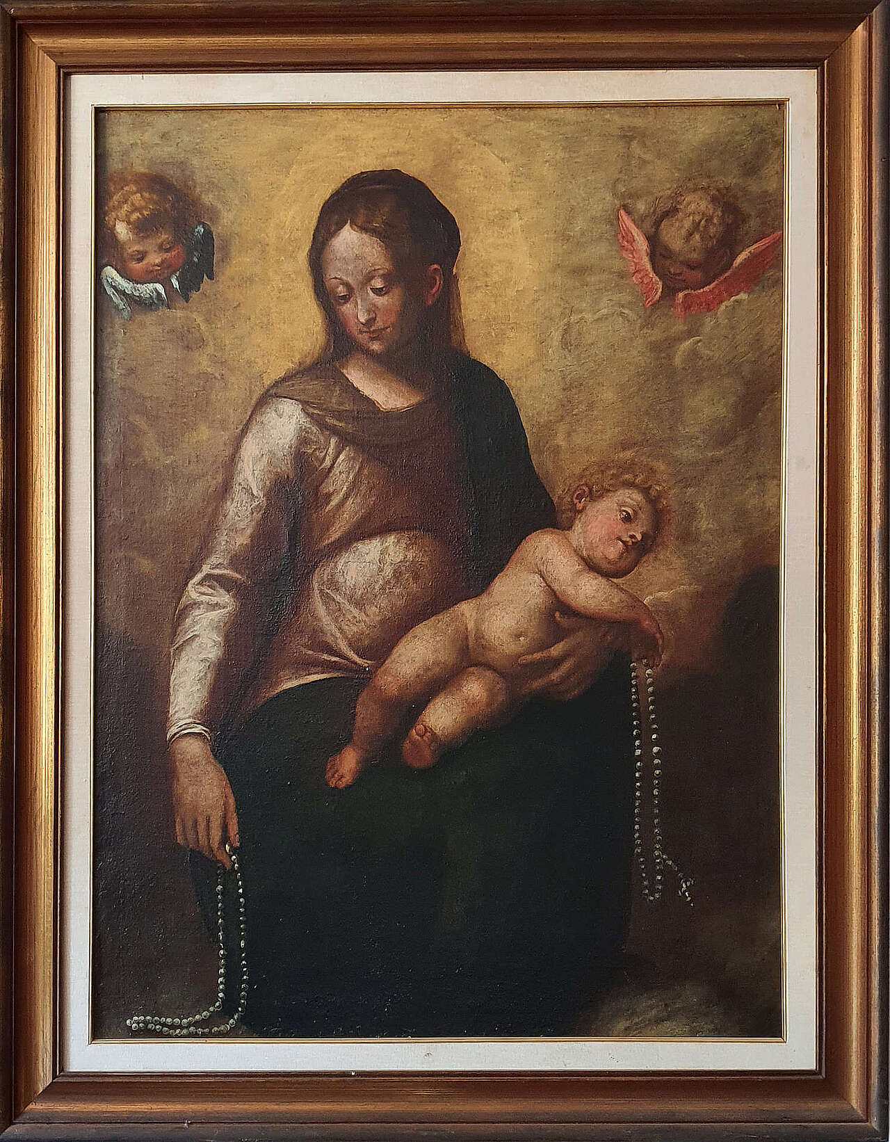 Madonna del rosario con bambino, tela probabile parte di Pala d'altare. Epoca '600