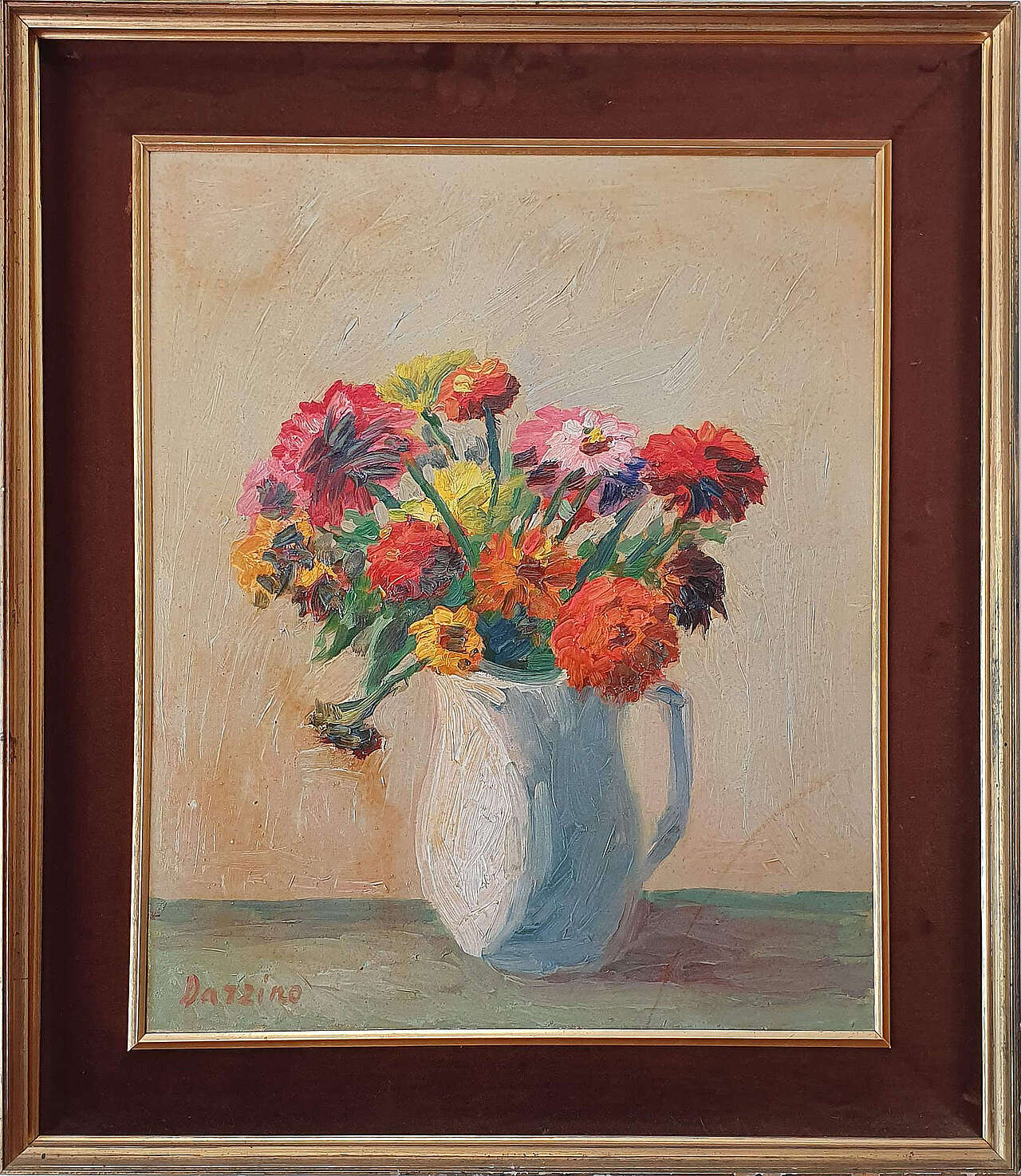 Vaso di fiori di Bruno Darzino (1922-1984), olio su tela.