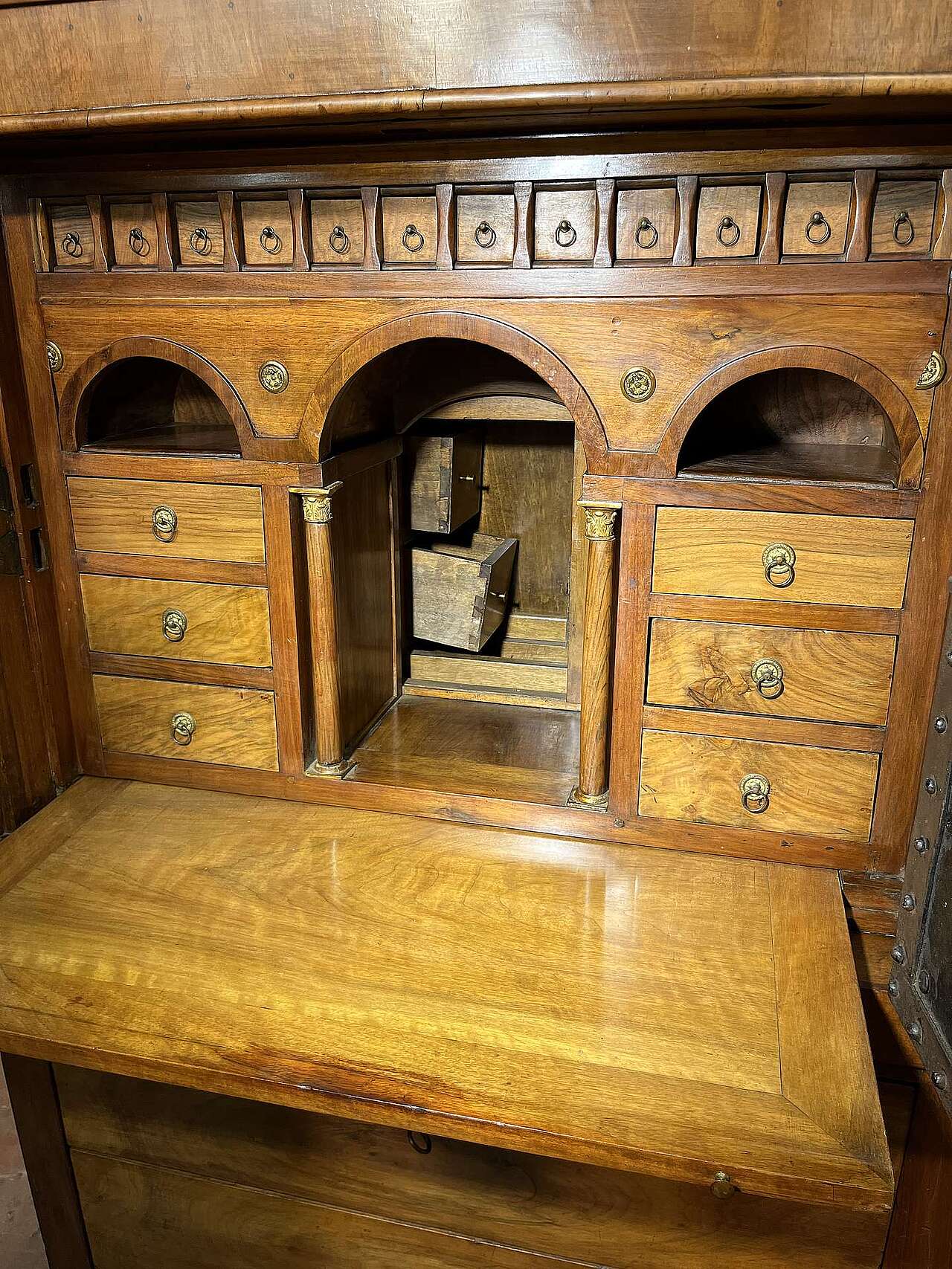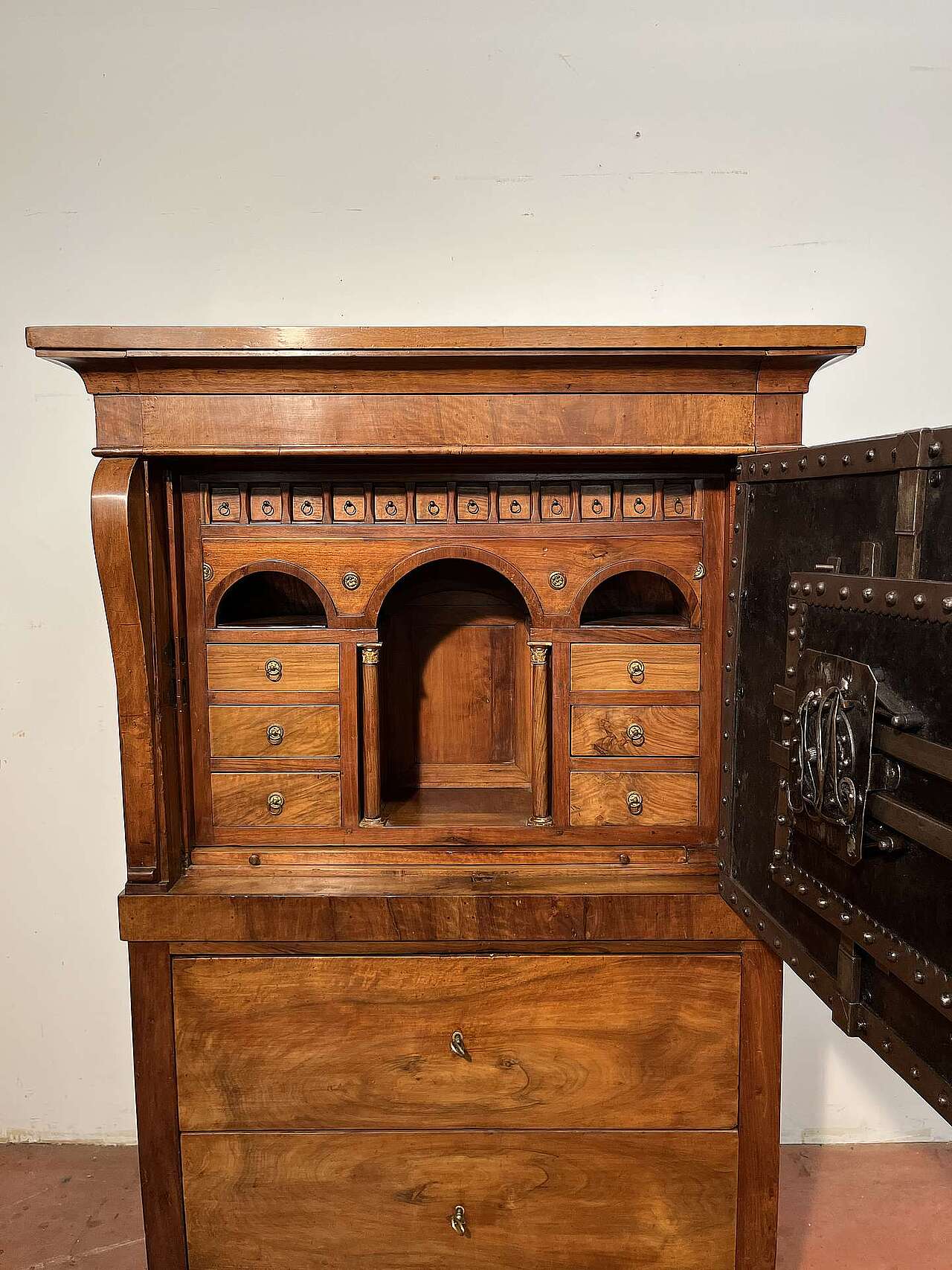 Monetiere primo 800 in legno noce massiccio con serratura originale e funzionamento a due chiavi.