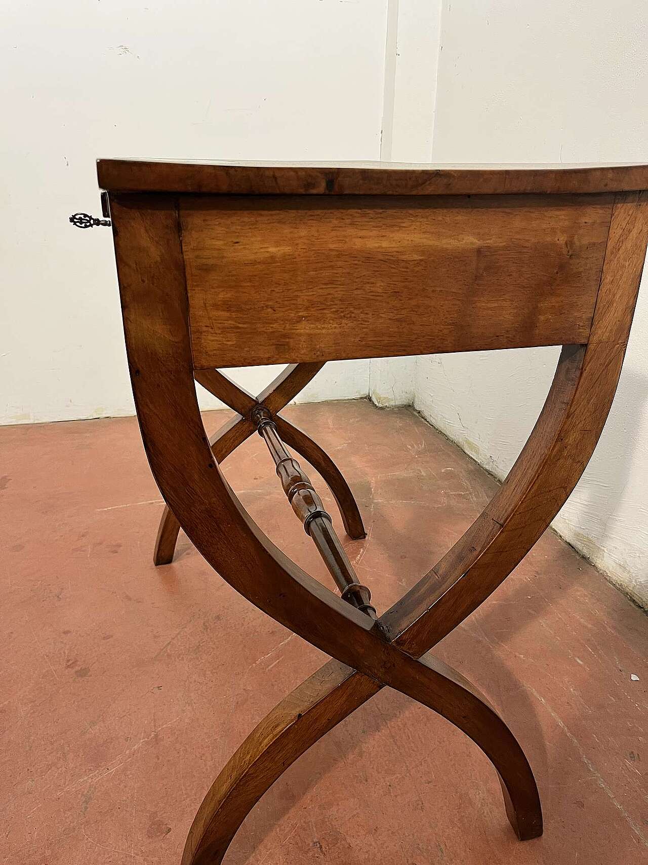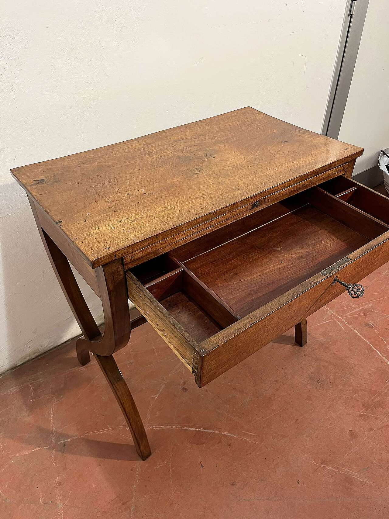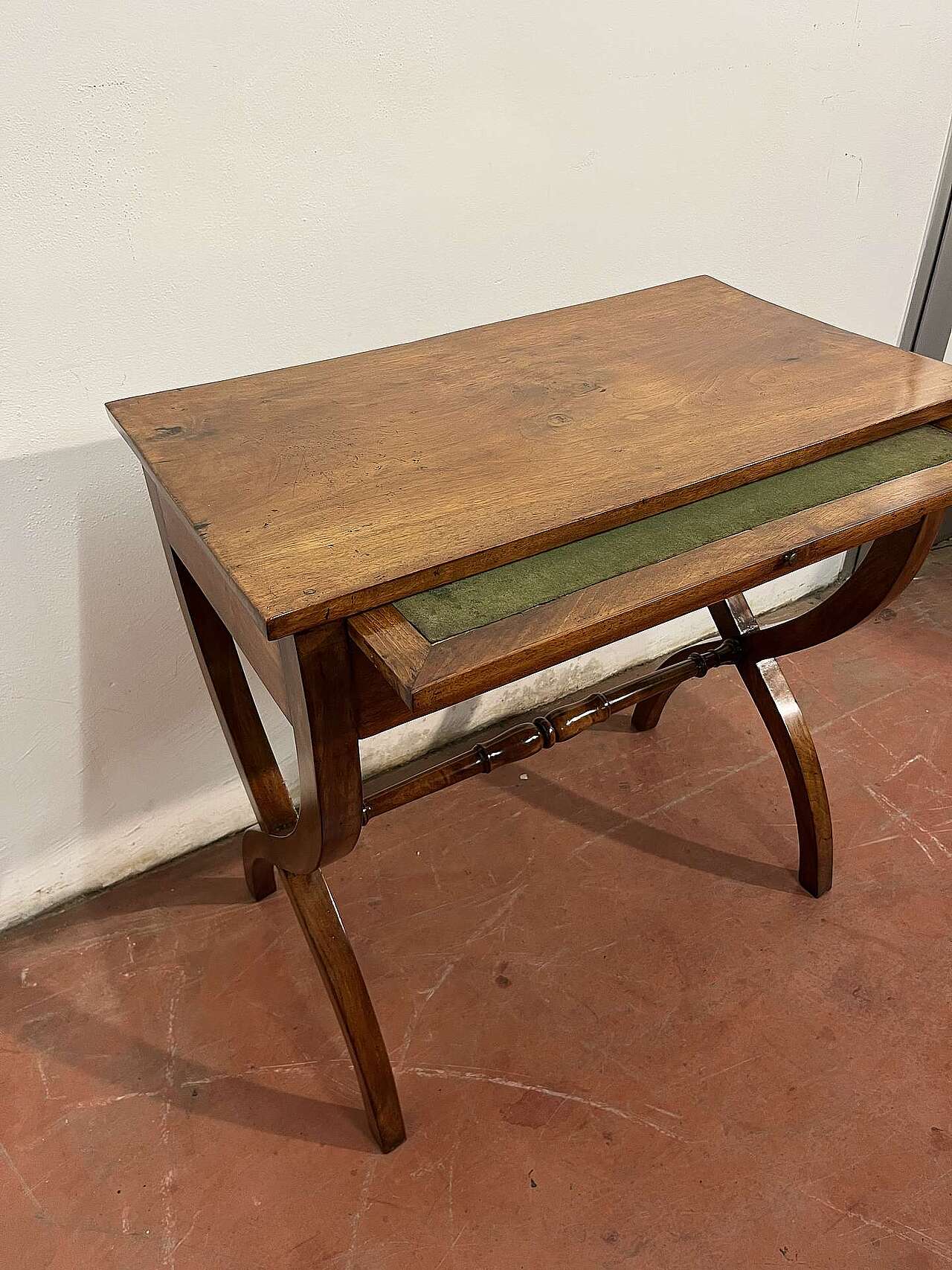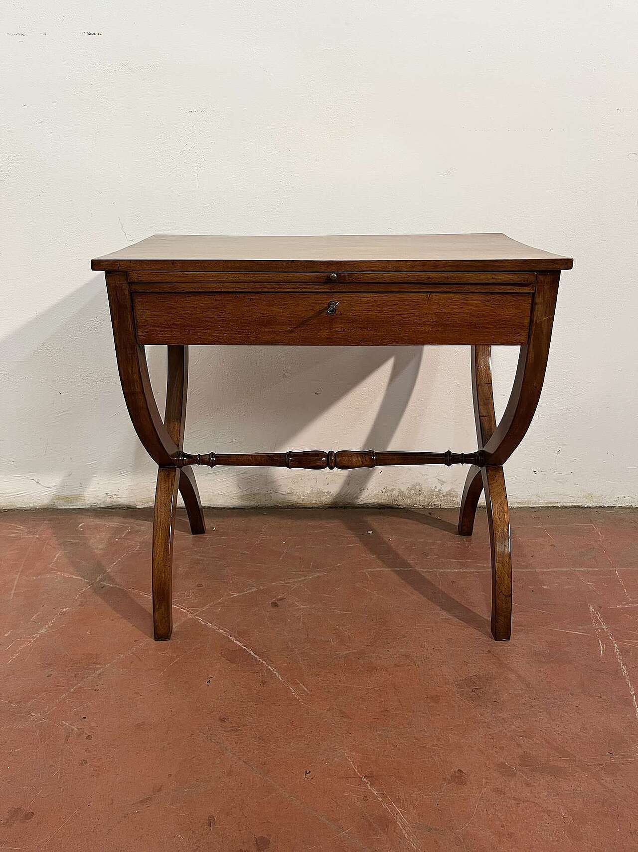 Tavolino Direttorio in noce, Veneto. Con cassetto e scrittoio.